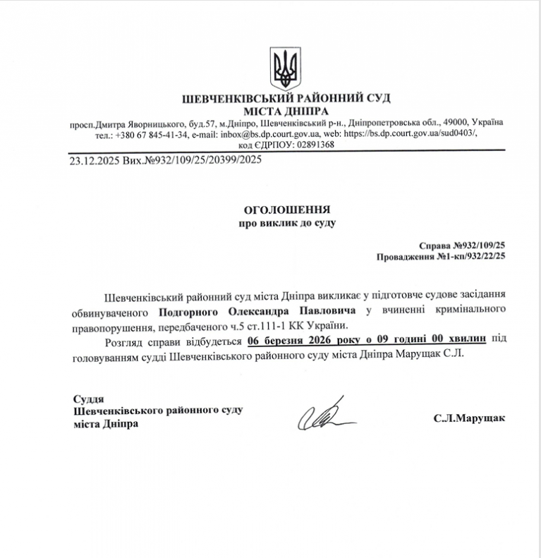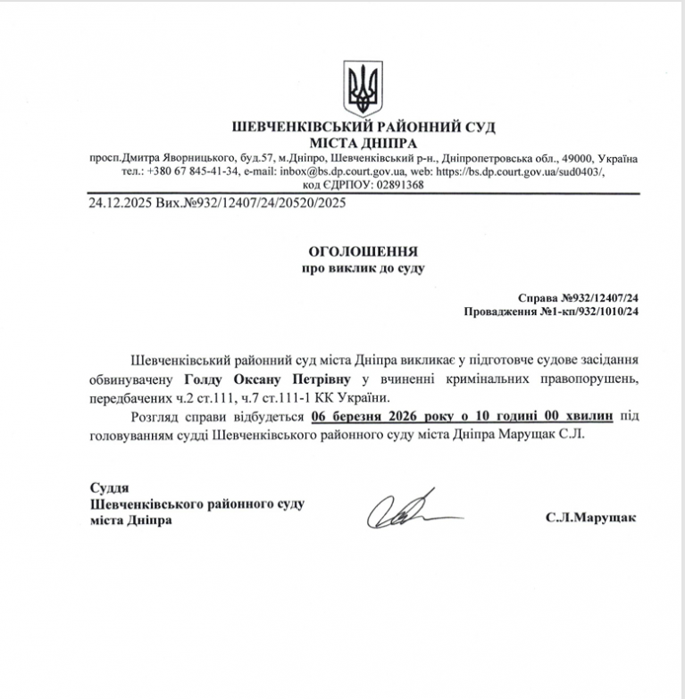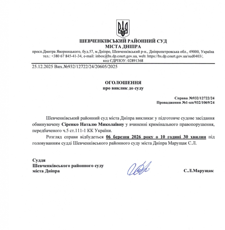 Вхідна загальна канцелярія :056-745-51-87;Канцелярія з обліку справ про адміністративні правопорушення: 063-484-10-77; Канцелярія з обліку кримінальних справ: 095-603-19-50; Канцелярія з обліку цивільних справ:056-745-51-58.