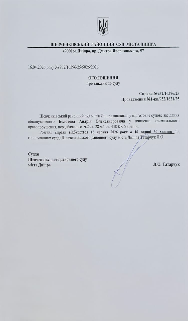 Оголошення про виклик особи в суд та повідомлення про судове рішення