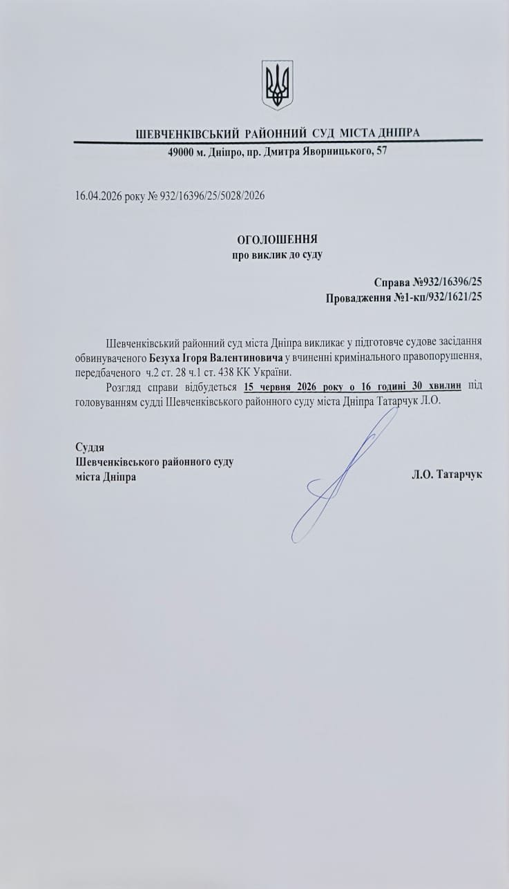 Оголошення про виклик особи в суд та повідомлення про судове рішення
